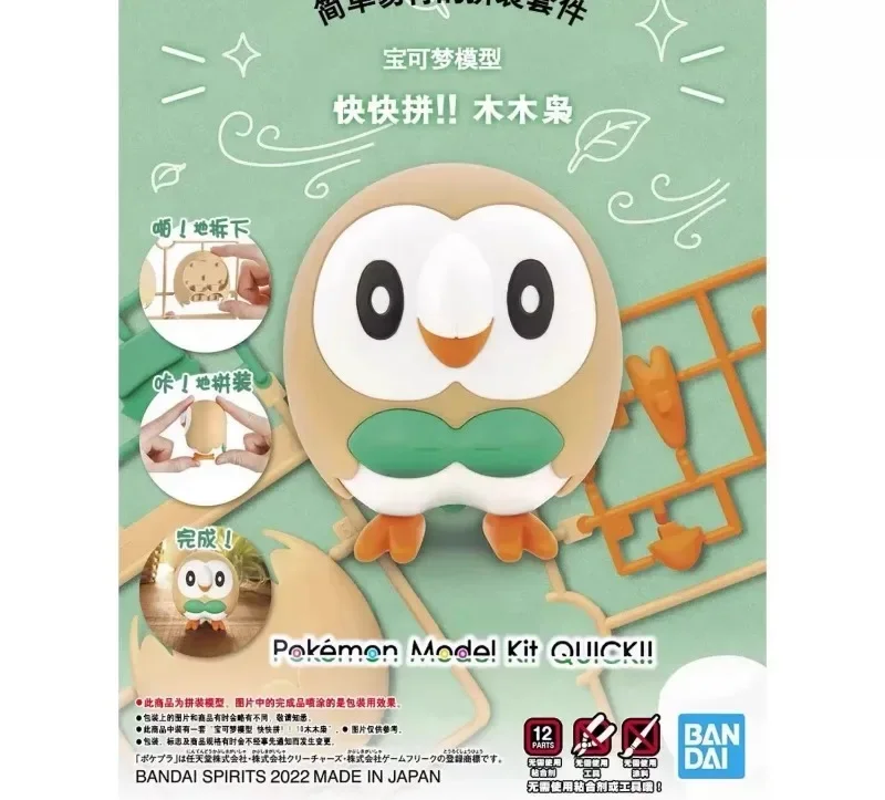 Anime Bandai Pokemon Charmander Bulbasaur Piplup Rowlet Scorbunny Mew Slowpoke Tepig Action Figure Assembly Model Ornament Toys